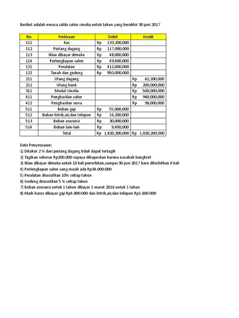 Metode instant juasai akuntansi dasar ( pencatatan, buku besar, neraca saldo, ayat jurnal penyesuaian, neraca lajur, laporan keuangan, jurnal dll. Cara membuat jurnal penyesuaian perusahaan dagang lebih menekankan pada pencatatan. Neraca lajur 8 kolom di atas terdiri dari: Membuat jurnal penyesuaian dengan menganalisis data dan memasukkan ke dalam neraca lajur kolom ayat penyesuaian (ap). Setelah anda mengetahui nilai neraca saldo dan jurnal penyesuaian, . Peserta didik mencari informasi terkait cara menyusun ayat jurnal . Penyusunan neraca lajur adalah sebagai berikut : Membuat jurnal penyesuaian dan neraca lajur berdasarkan berbagai sumber belajar. Proses penyesuaian (pembuatan ayat jurnal penyesuaian) dilakukan." catur sasongko ( 2016:04). Sesudah kamu mencatat jurnal penyesuaian, maka ada akun neraca saldo sebelum penyesuaian yang mengalami perubahan. Beli buku di gramedia elemen laporan keuangan . Membuat neraca lajur adalah salah satu cara yang bisa membantu akuntan menyusun. Dengan menggunakan worksheet ini akan menjadi sarana meminimalisir kesalahan yang mungkin bisa terjadi ketika membuat jurnal .